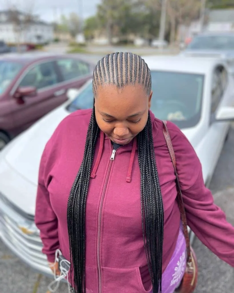 The classic straight back cornrow is a timeless choice that never goes out of style. These sleek, straight lines are perfect for any occasion, providing a neat and tidy look that's both professional and chic. The no knot technique ensures that your hair stays healthy and free from tension.
